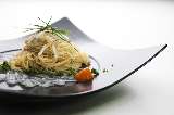 カジュアルで食べやすい「河豚刺しのカッペリーニパスタランチ)」のフグパスタは